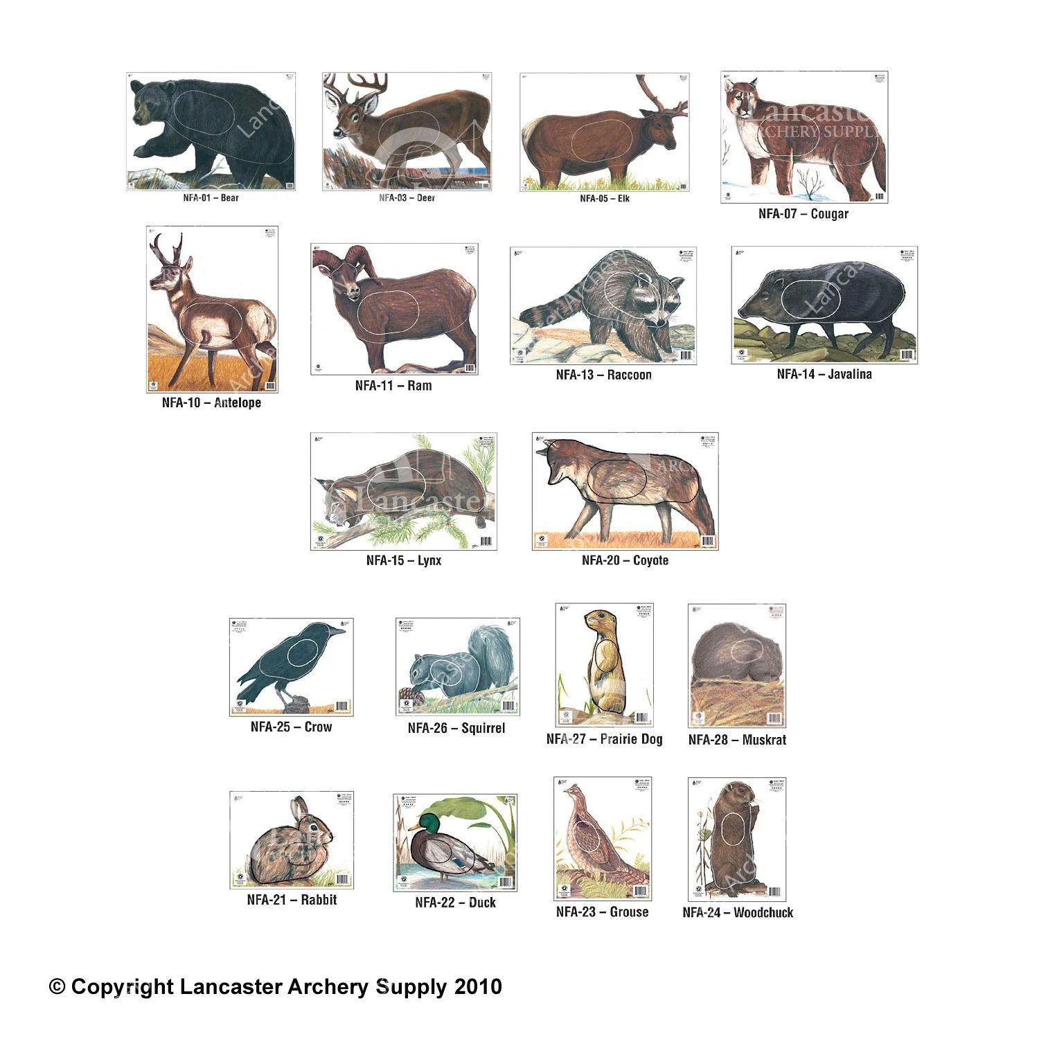 Group 4: N21 Rabbit, N22 Duck, N23 Grouse, N24 Woodchuck, N25 Crow, N26 Squirrel, N27 Prairie Dog, N28 Muskrat (11-1/4″ x 14-1/4″)